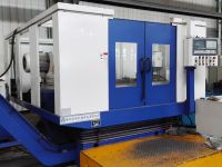 火車鉤尾框承載面加工專機(jī),本機(jī)床為臥式單面布置,前面數(shù)控移動(dòng)工作臺(tái)上安裝有回轉(zhuǎn)夾具,后面數(shù)控移動(dòng)工作臺(tái)上配有專用雙軸銑削動(dòng)力頭。夾具具有自動(dòng)回轉(zhuǎn)及回轉(zhuǎn)到位后自動(dòng)鎖緊功能,回轉(zhuǎn)角度由固定擋鐵控制,更換品種時(shí)需更換擋鐵塊。本機(jī)床主要用于13B、17型、力拓40T鉤尾框承載面的銑削加工,生產(chǎn)節(jié)拍:4分鐘/件。工件以底面、側(cè)面及尾部定位,液壓油缸夾緊。人工吊裝上下料,一次一件,液壓夾緊,數(shù)控系統(tǒng)控制,并配有獨(dú)立的液壓站、電氣柜、集中潤滑裝置。本機(jī)床加工剛性好,并適合多品種加工。